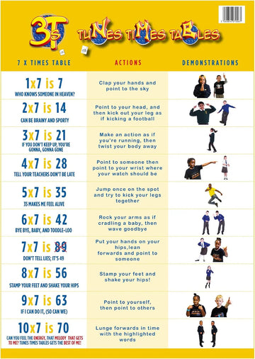 Fun and Interactive Learning: With Tunes Times Table Chart, turn maths practise into an exciting adventure. Perfect for children aged 5-11, this chart uses catchy tunes, actions and engaging visuals to make learning times tables fun and memorable