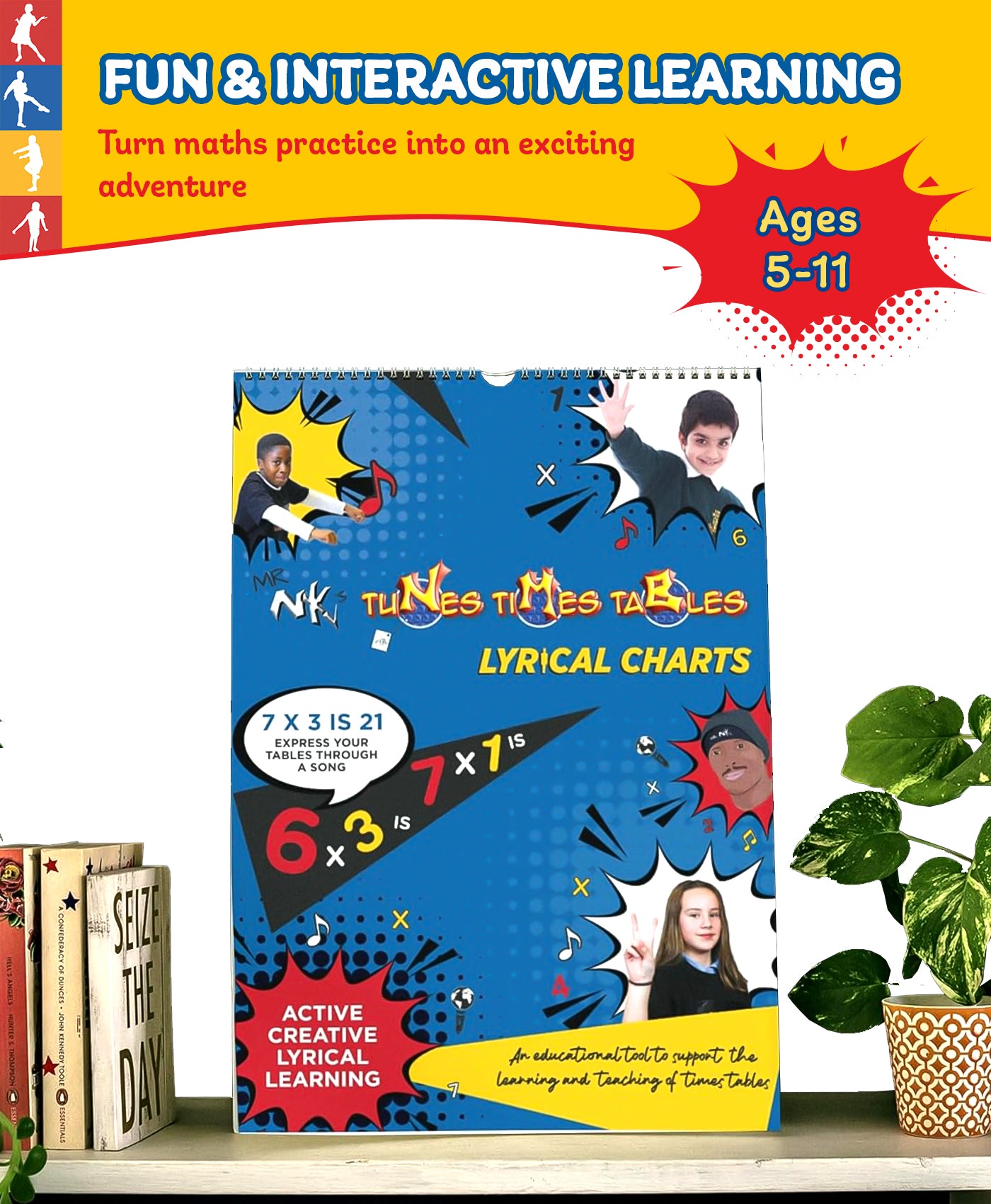 This A3 wirebound chart is designed for children aged 5–11, combining numbers, rhymes, and actions to make times tables engaging and memorable. Perfect for home or classroom use, it supports Special Educational Needs and Disabilities (SEND) learners and aligns with the National Curriculum to ensure it meets educational standards.