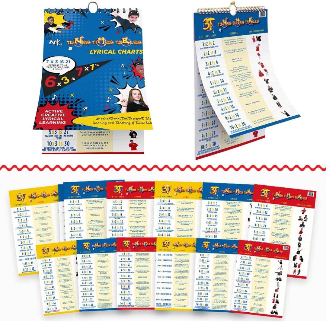 Tunes Times Tables Lyrical Wall Poster 1 to 12, Complete Multiplication Mastery Lyrical A3 Charts Maths Wall Charts, Lyrical Charts for Interactive Learning, MTC Test Training